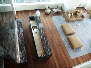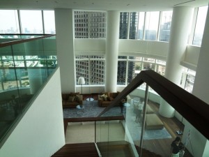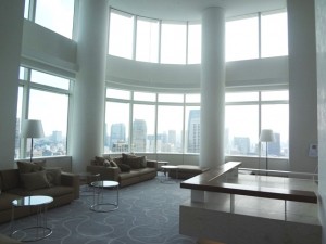 ◆With a ceiling hight of around 6.8 meters, the 25th floor View Lounge offers magnificient views of the open sky, Tokyo Tower, Reinbow Bridge and other landmarks of the city.