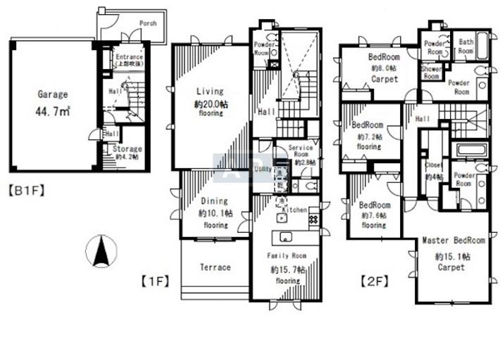 147.02 sq.m. 1581.9 sq.f. 44.5 tsubo
