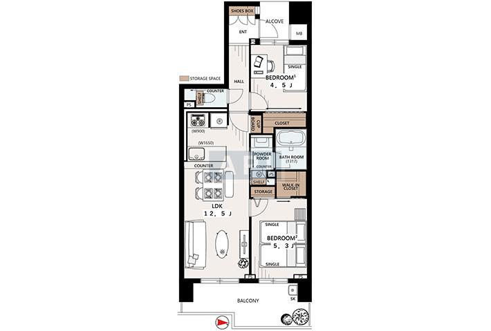 52.59 sq.m. 565.9 sq.f. 15.9 tsubo